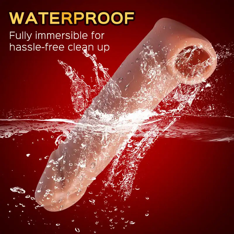 The penis extension sleeve is housed with a surreal appearance and is textured, which mimics the realistic anatomy of the penis - glans, and veins to make your partner feels like banging with the real thing. Moreover, this penis enhancer is adding a detachable bullet vibrator at the glans, which vibrates while every thrusting movement to enhance rumbling stimulation to your sensitive glans and hit y bring your orgasmic pleasure to the next level.
